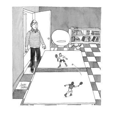 Tiny Tennis Players On Ping Pong Table Cartoon Premium Giclee