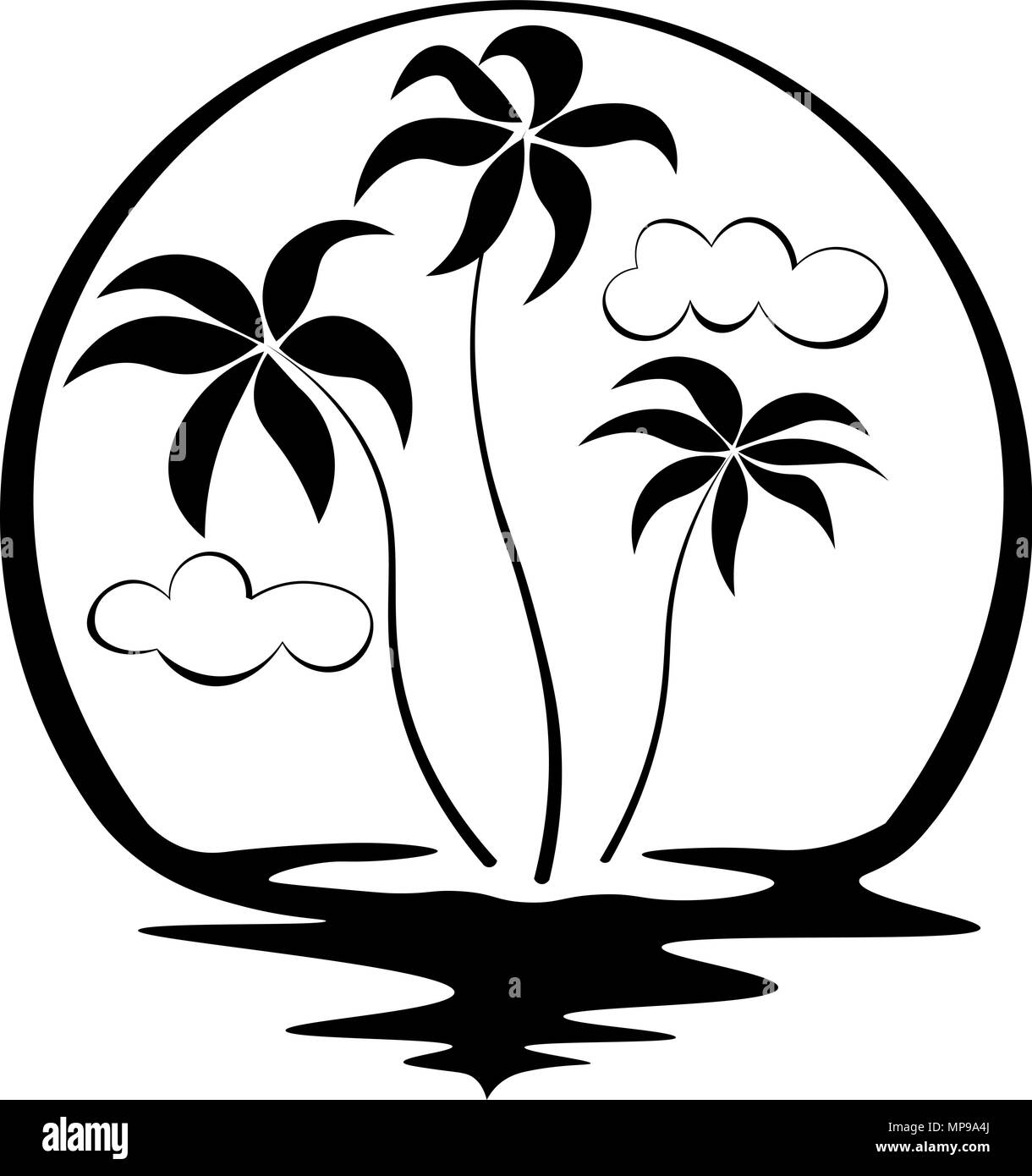 Palm Tree Island Icon On Black And White Vector Backgrounds Stock