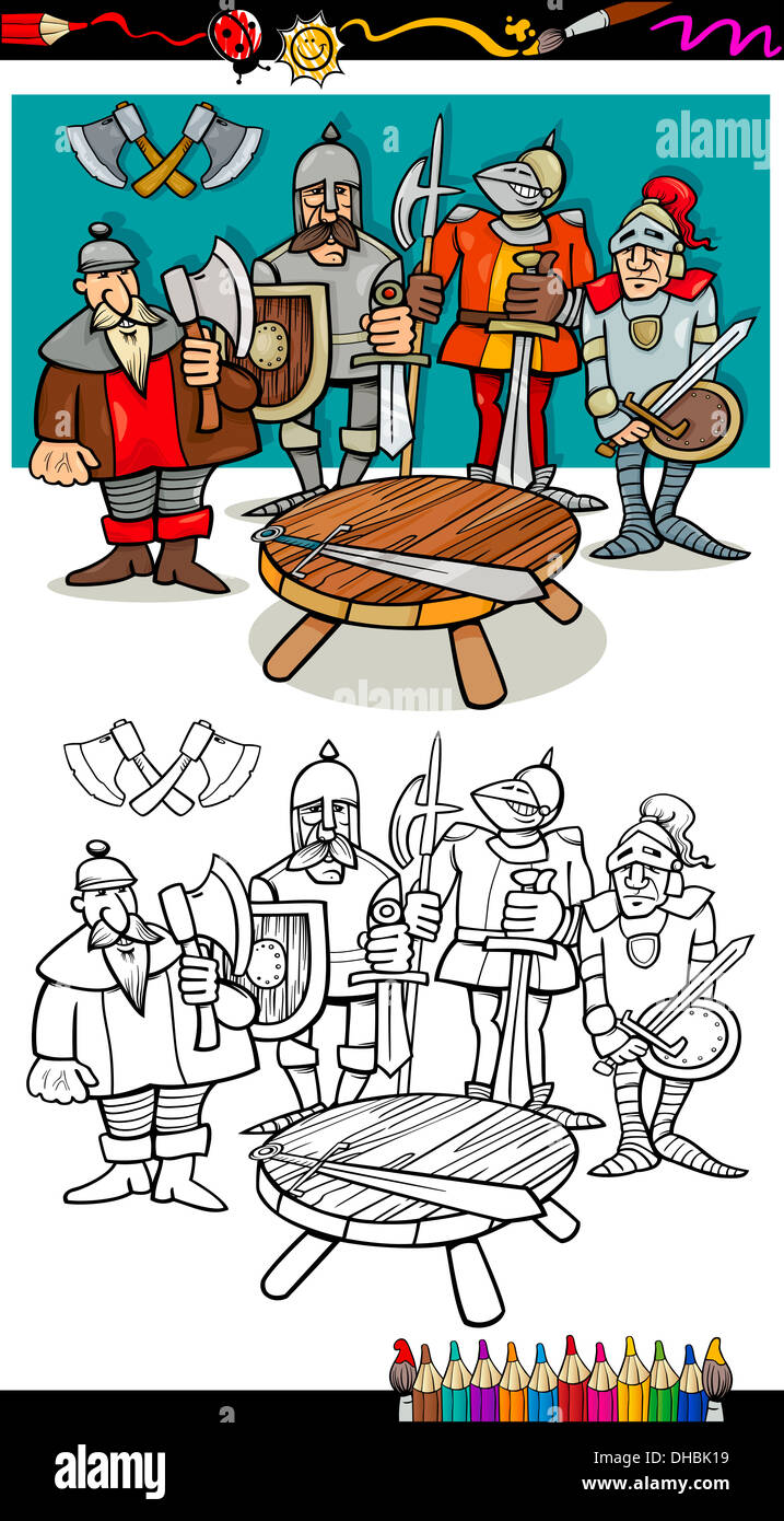 Black And White Cartoon Illustration Of Legendary Knights Of The