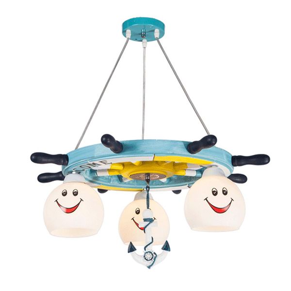 Oovov Wooden Rudder Mediterranean Style Pendant Lamp Cartoon Child