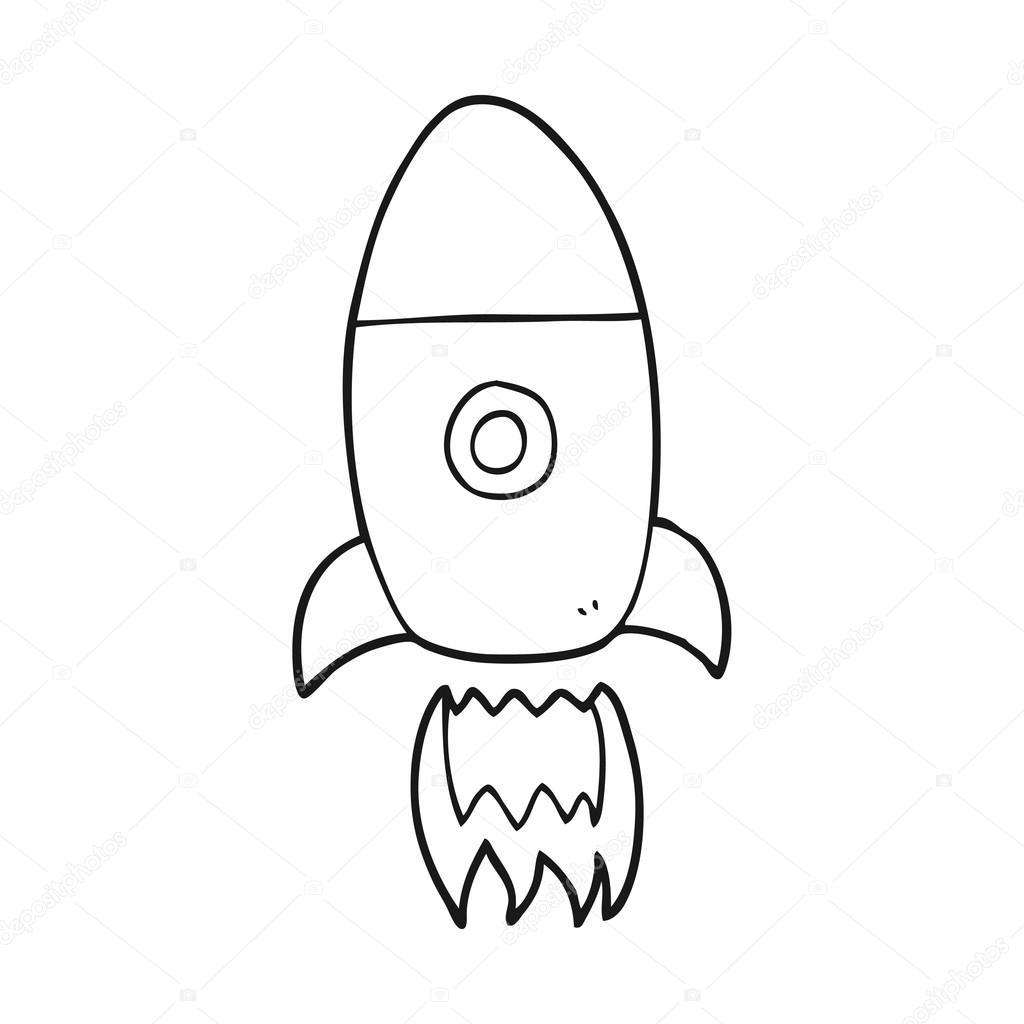 Simple Black And White Rocket Cartoon Stock Vector Art