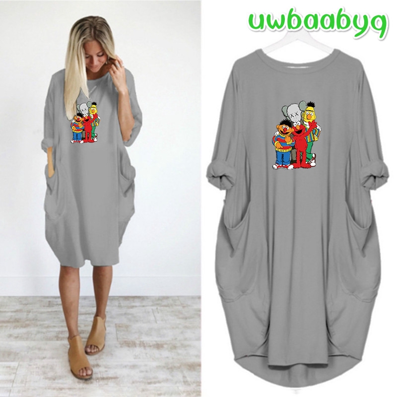 Baab Women Dress Happy Time Kaws Print Cartoon Party Pocket