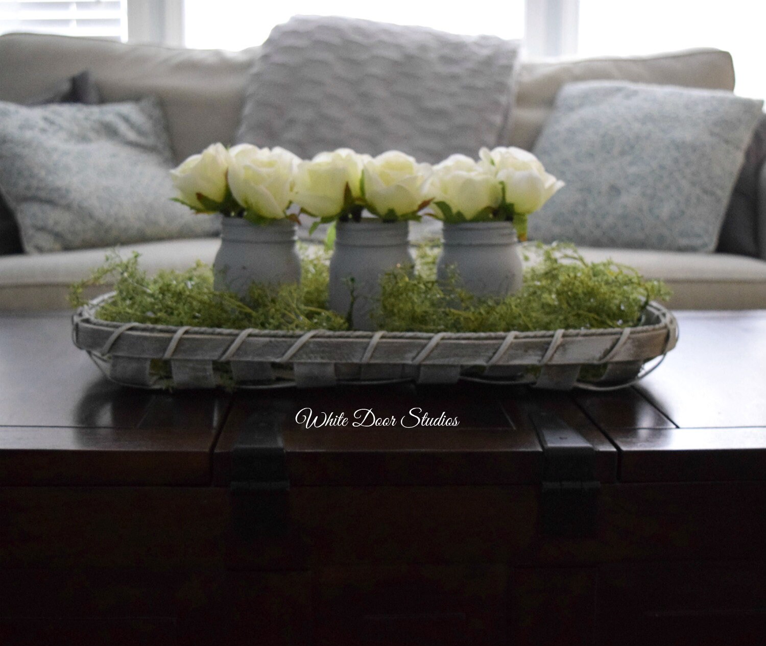 Rustic Tobacco Basket Farmhouse Style Centerpiece With Mason