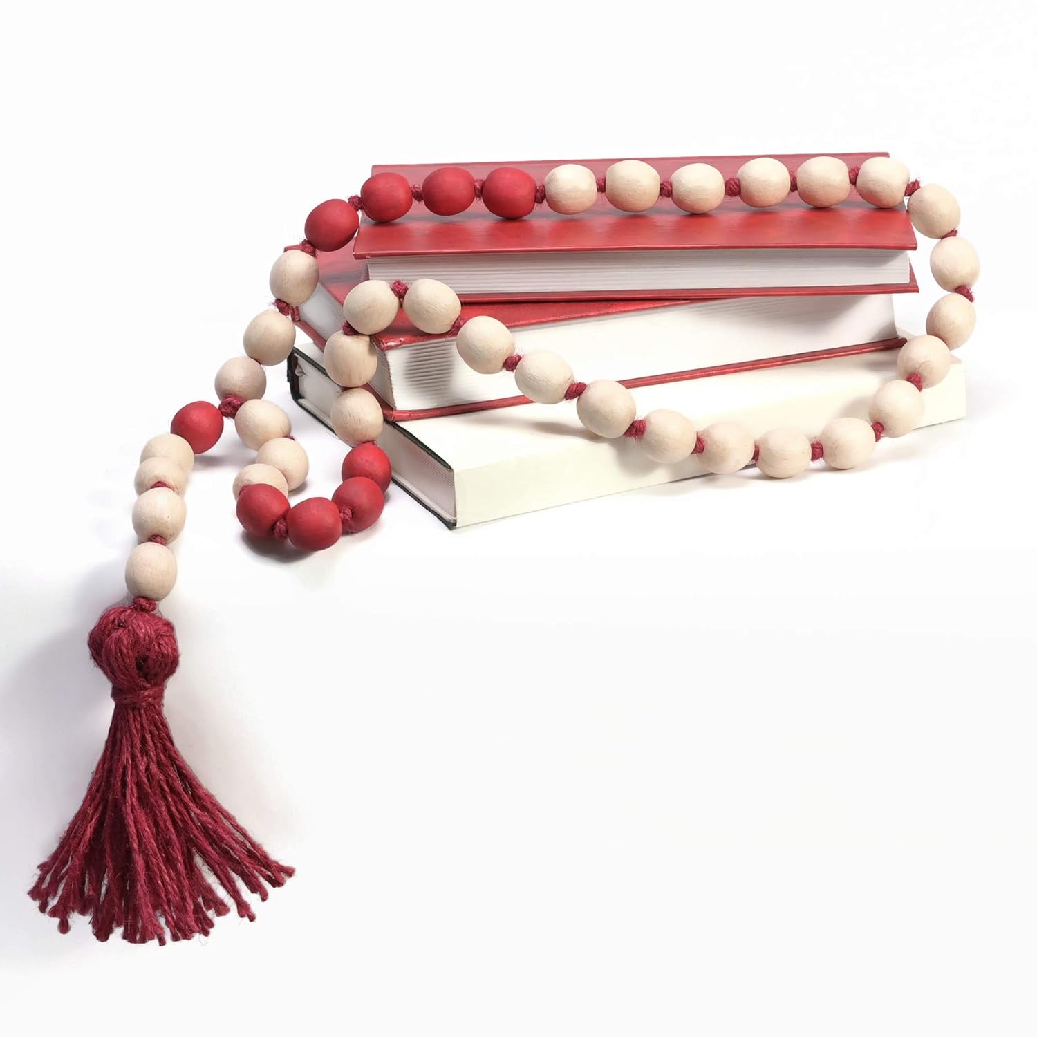 Amazon Com Farmhouse Wooden Beads Garland Red With Tassel Coffee