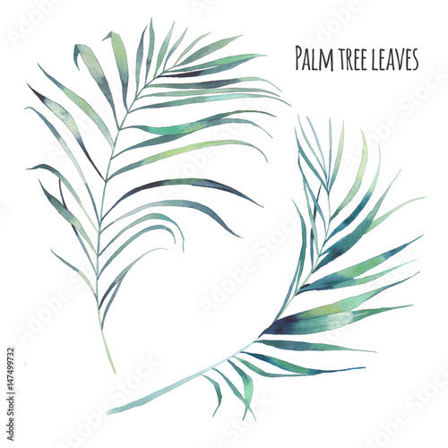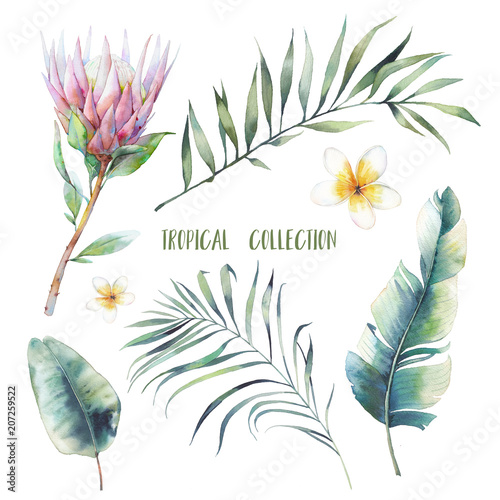 Watercolor Tropical Leaves Set Hand Painted Exotic Palm Tree