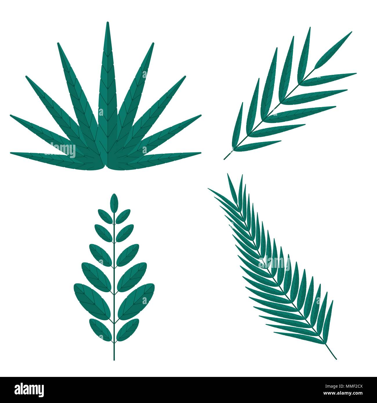 Tropical Green Leaves Set Of Vector Illustrations Stock