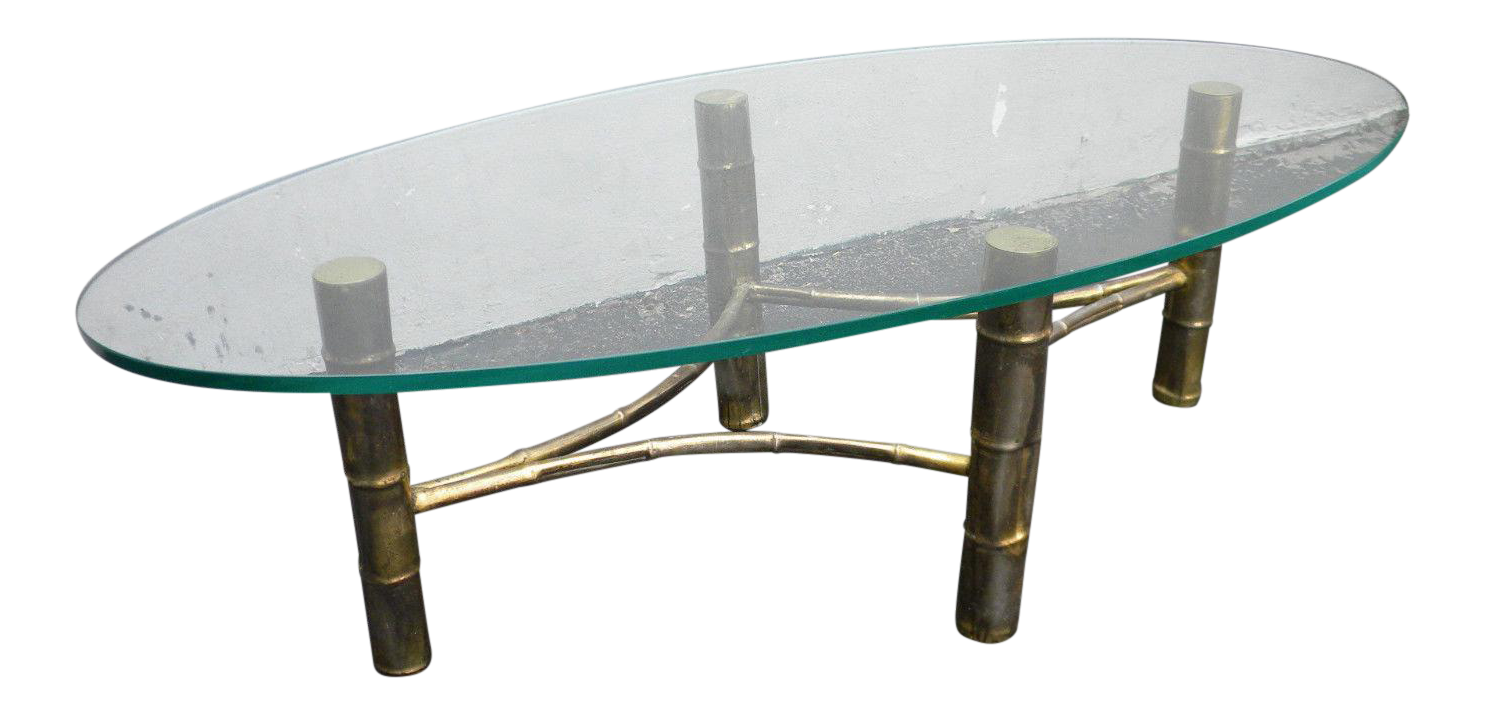Faux Bamboo Mid Century Modern Oval Glass Top Coffee Table Etsy