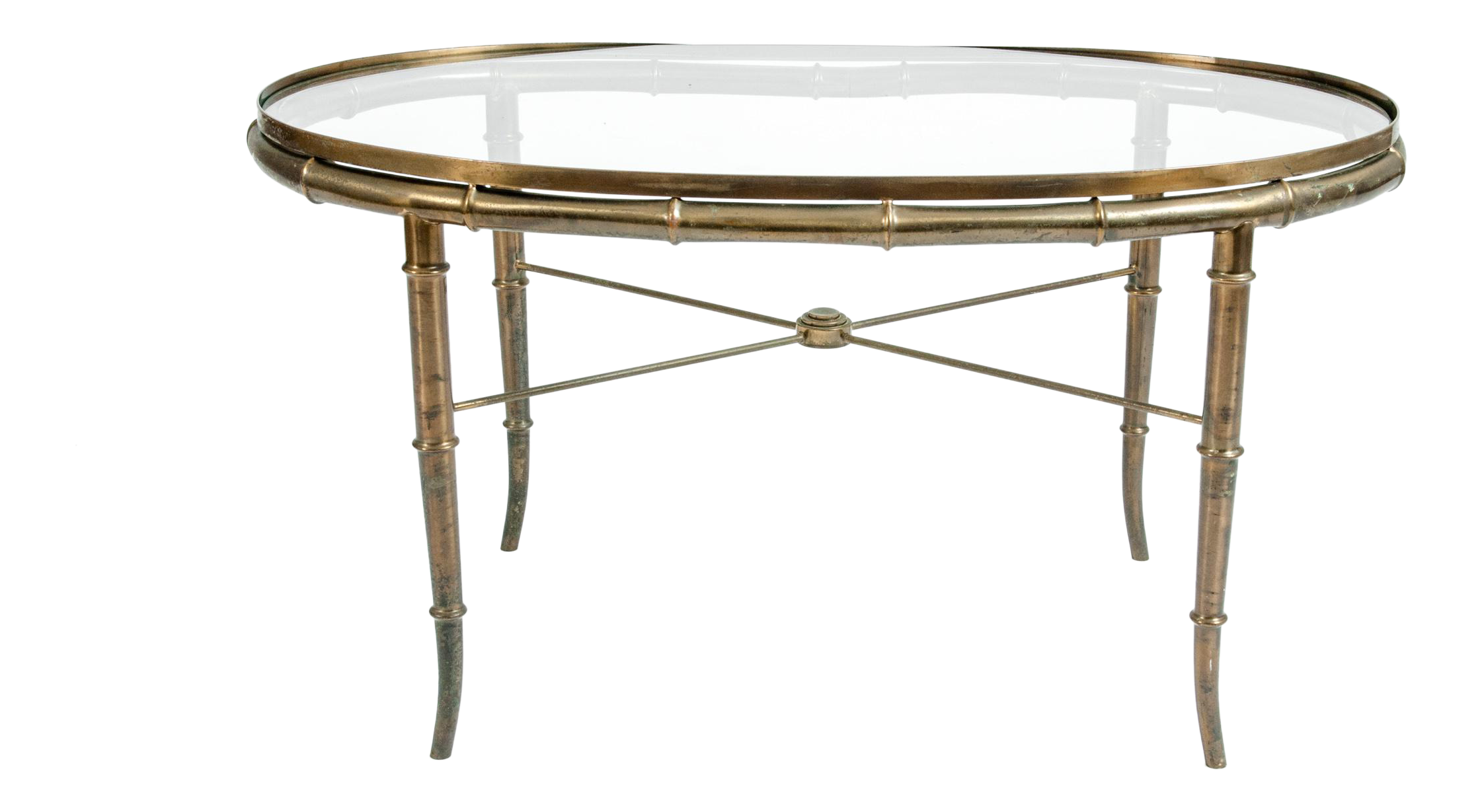 Italian Mid Century Hollywood Regency Oval Glass Top Coffee Table