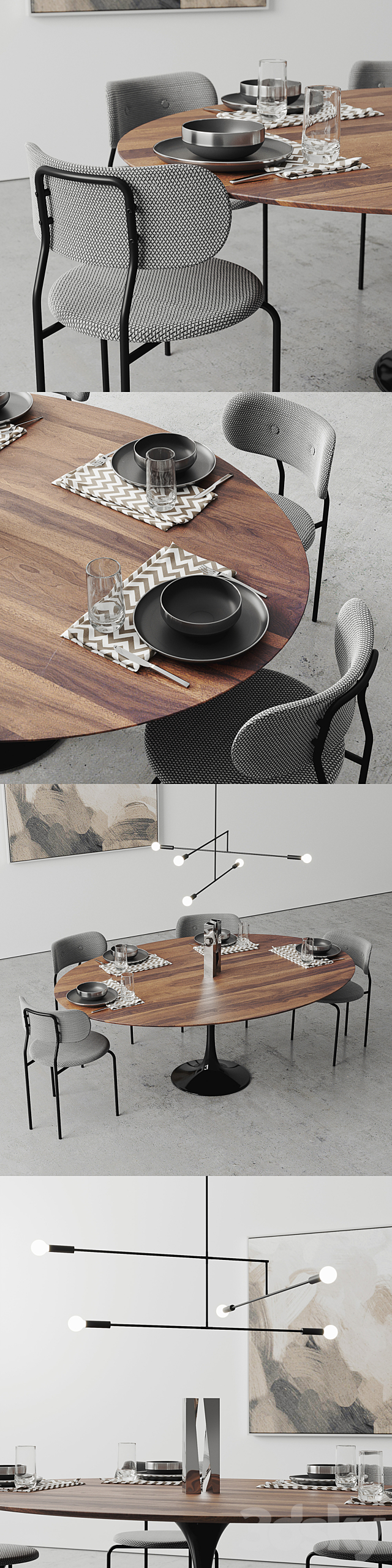 3d Models Table Chair Oval Tulip Dining Table 78 Walnut Set
