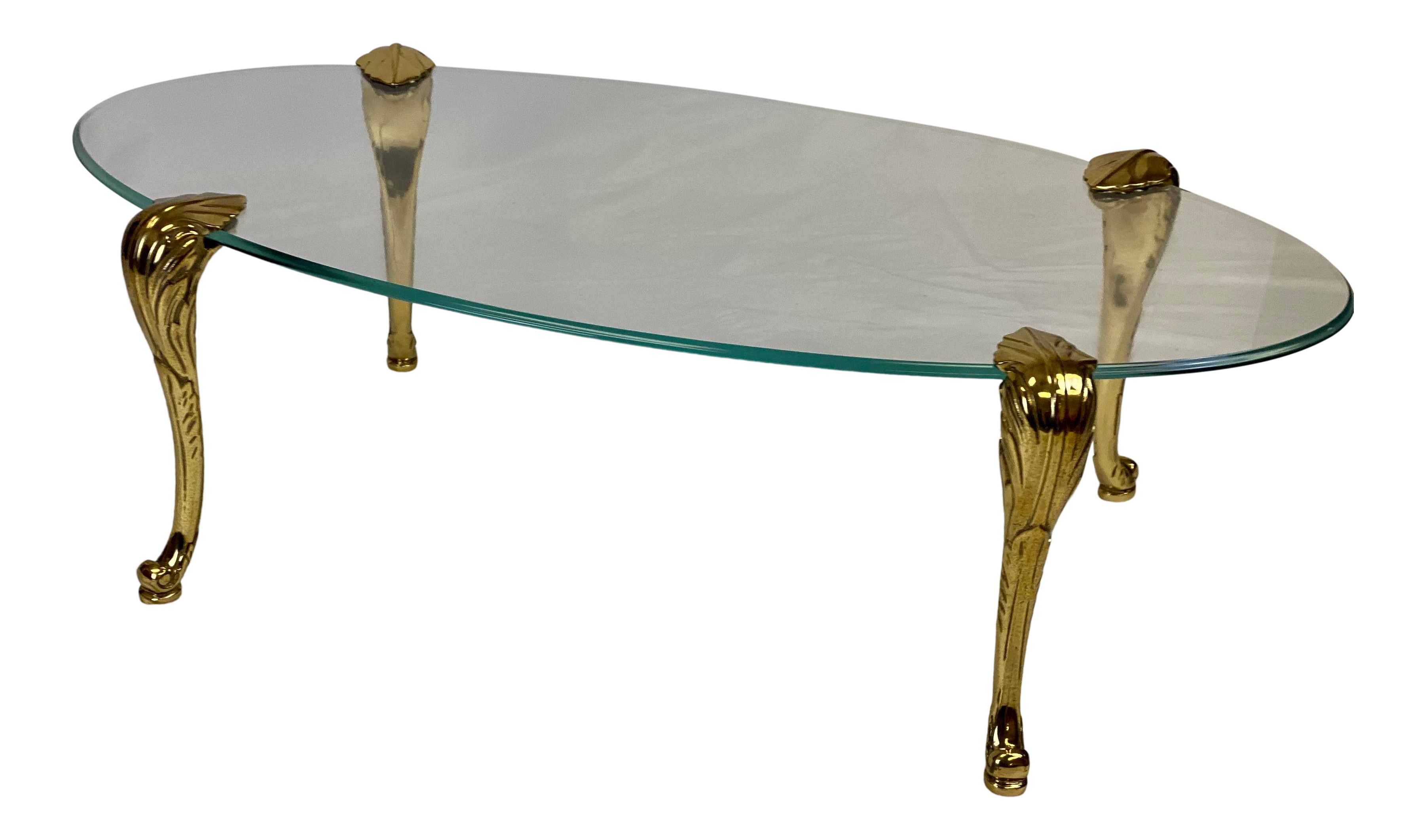 Oval Glass Top Coffee Table With Brass Cabriole Legs Possib