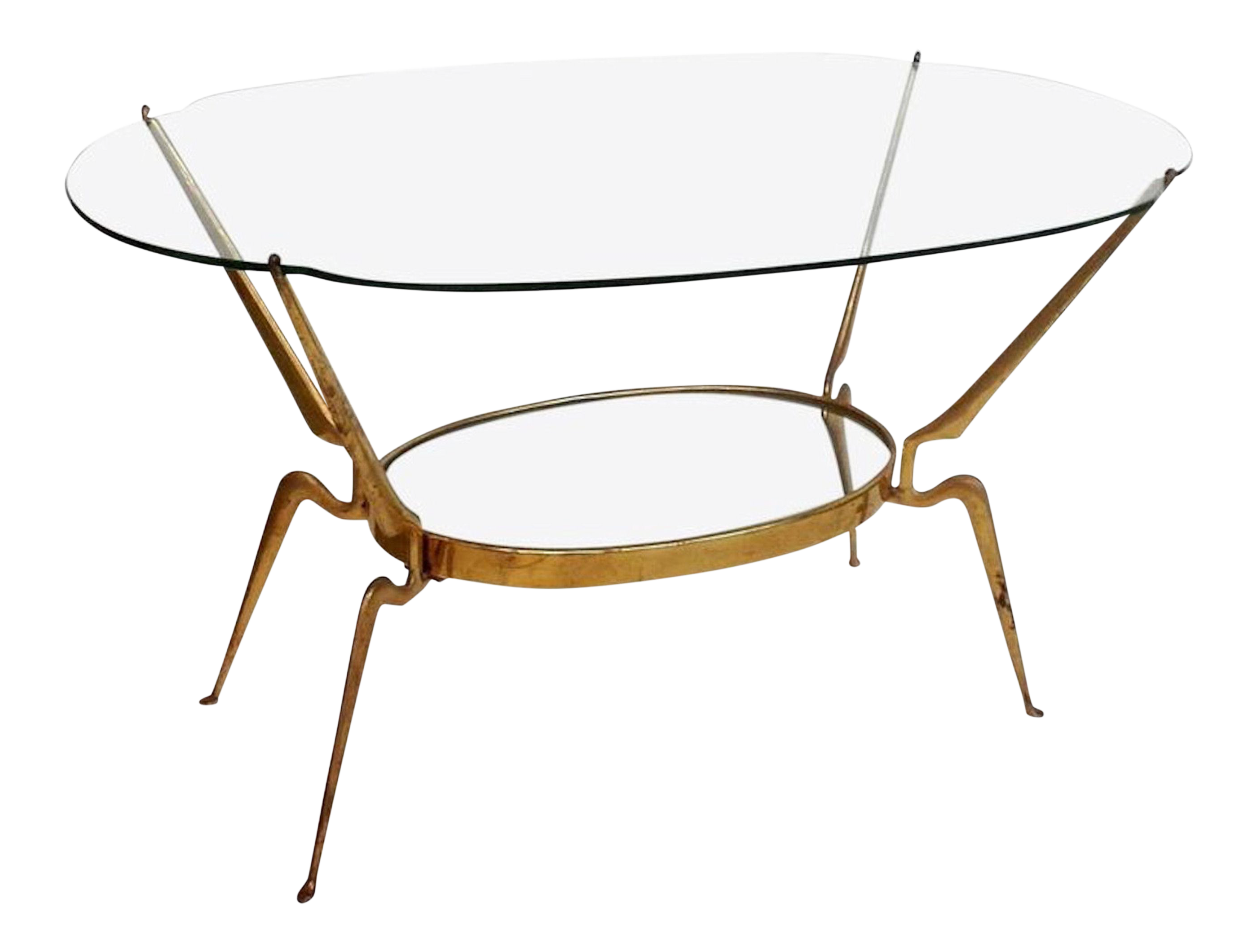 1950s Italy Mid Century Modern Brass Glass Coffee Table By