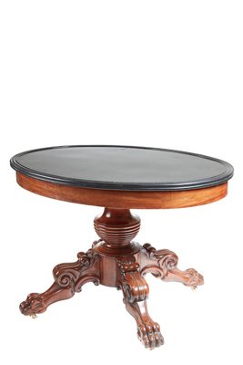 Antique Oval Walnut And Black Marble Top Table For Sale At Pamono