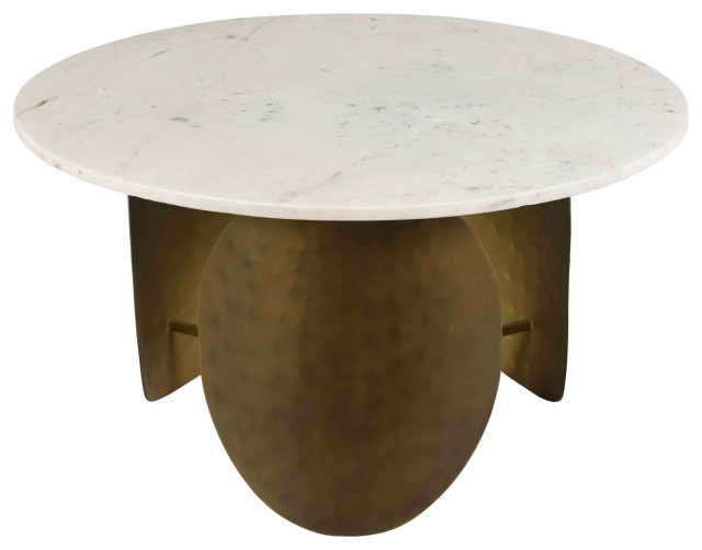 Antique Brass Flat Oval Legs White Marble Round Top Cocktail Table