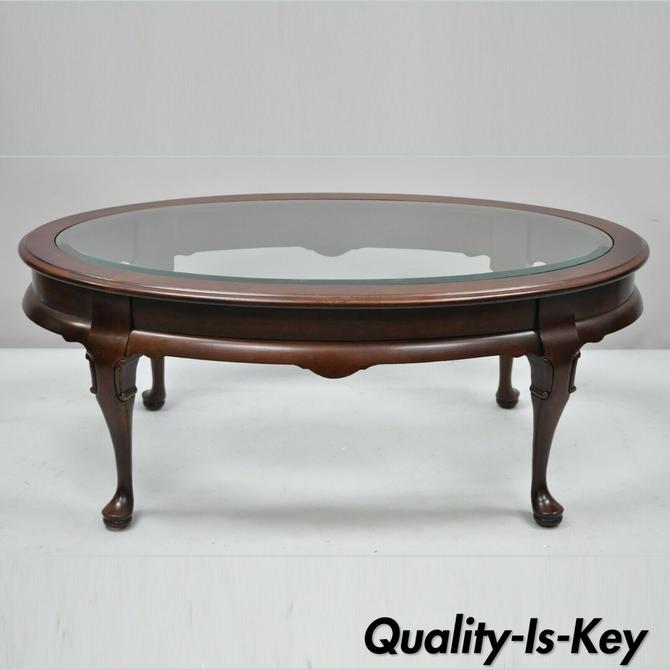Oval Glass Top Cherry Queen Anne Leg Coffee Table Hammary Carlton