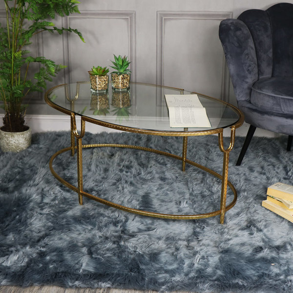 Large Gold Oval Glass Topped Coffee Table Melody Maison