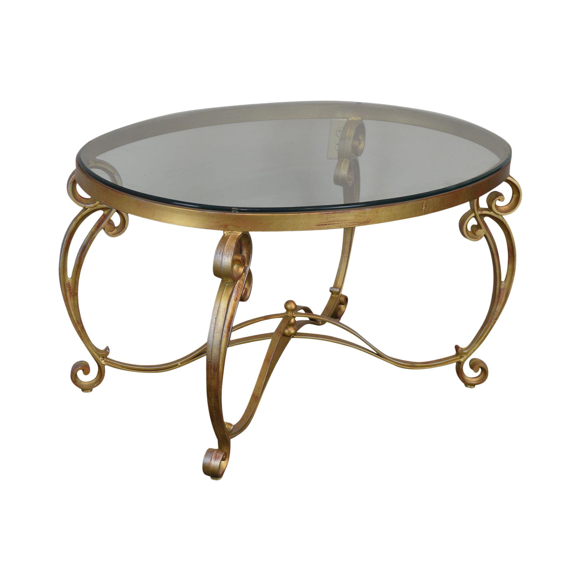 Vintage Gold Round Glass Top Coffee Table Melody Maison