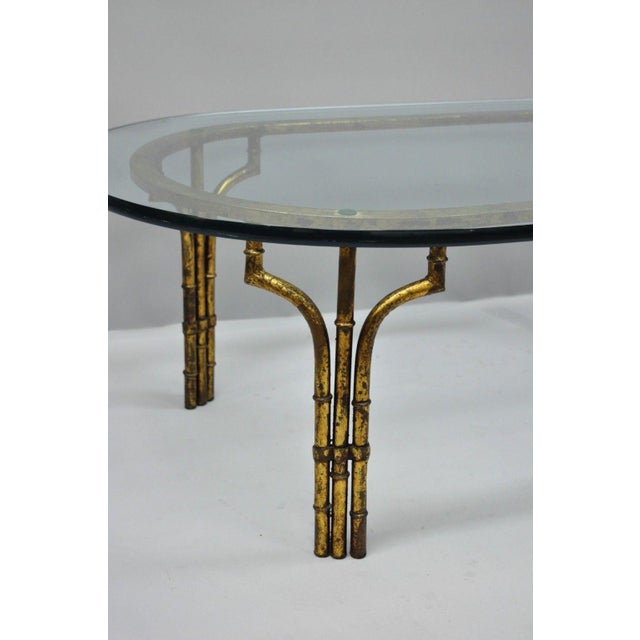 Italian Hollywood Regency Faux Bamboo Gold Gilt Oval Glass Coffee