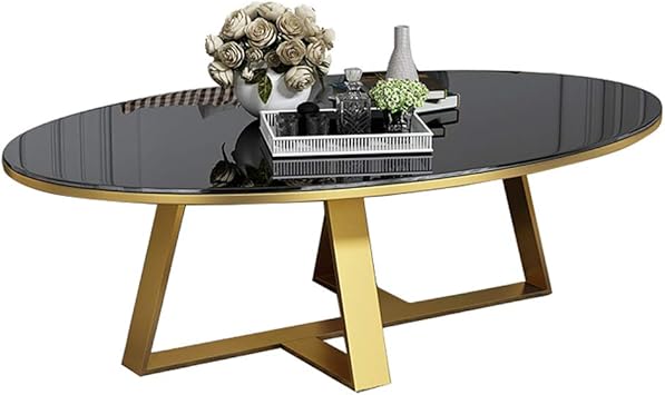 Oval Coffee Tables For Living Room Black Tempered Glass Top Gold