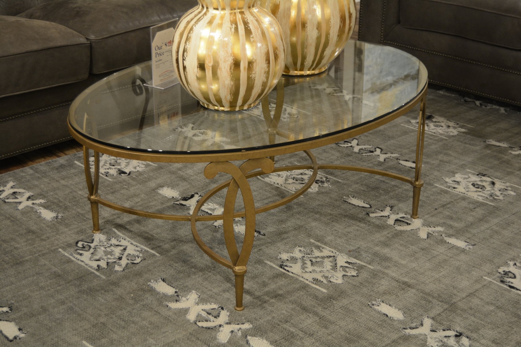 Chasca Glass Top Gold Oval Coffee Table Oval Glass Coffee Table